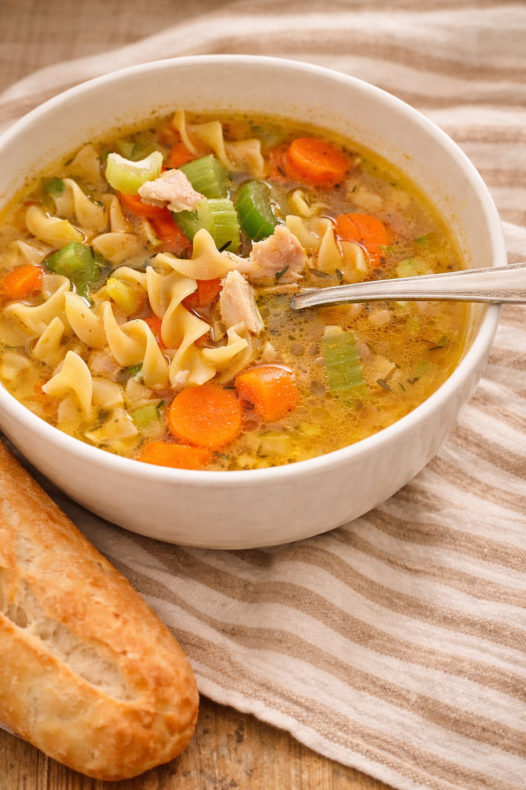 This is a true classic chicken noodle soup from scratch — no canned shortcuts, just wholesome comfort food.