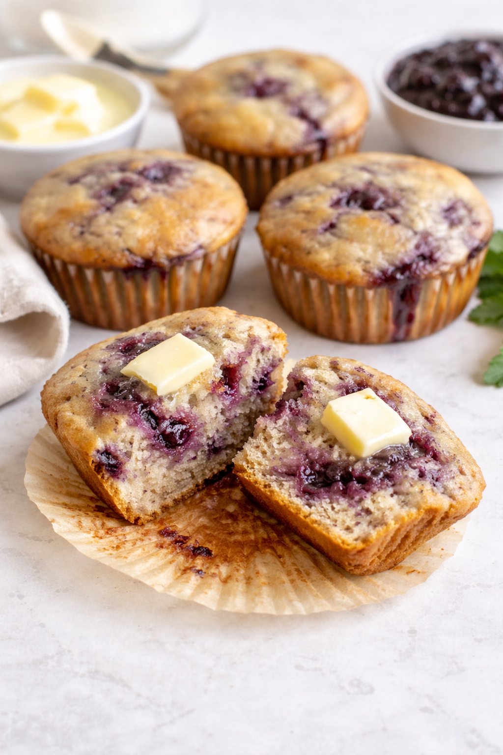 These soft and fluffy blueberry jam muffins are an easy homemade breakfast made with simple pantry ingredients. Using blueberry jam instead of fresh berries creates sweet pockets of jam throughout each muffin, making them moist, tender, and bakery-style with minimal effort.