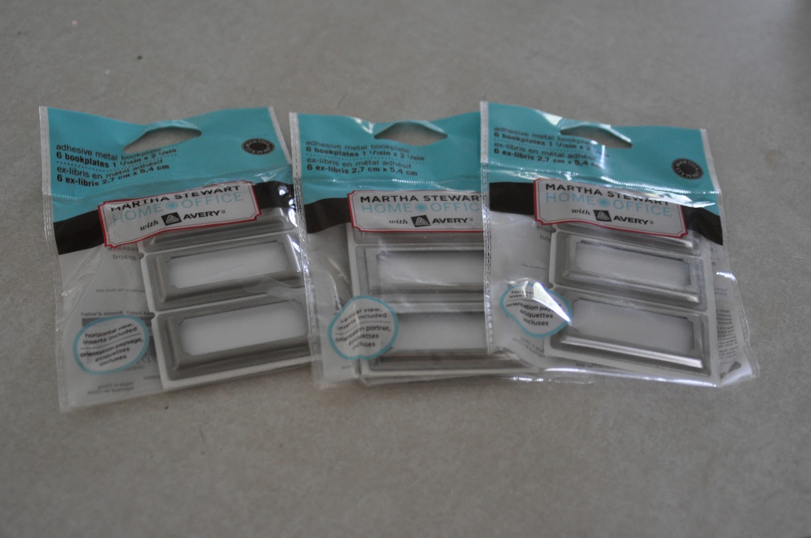 I’m probably going to need to caulk the edges a bit, but for now it’s fine.The finishing touch was those labels, and if you haven’t yet been to Staples, now is the time my friends! Martha Stewart has saved the day yet again with her metal book plates.