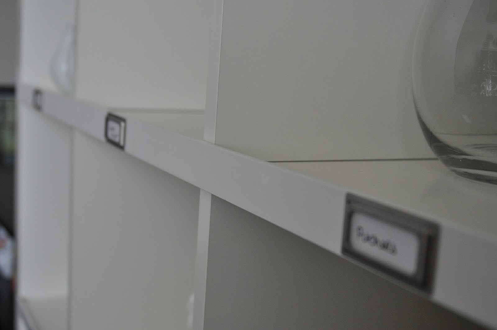 Yesterday afternoon I took a drive up to Ikea and grabbed one.CAUTION: This thing is HEAVY! Once I brought it home and put it together, I realized the shelves in the middle were too narrow to put a metal name plate on like the PB one. Bummer, right?