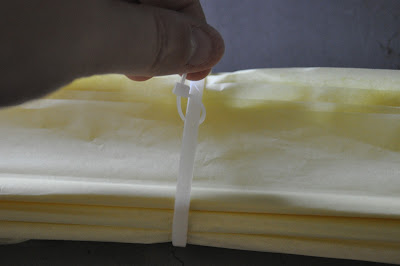 Then using a medium size zip tie, secure it in the middle. The reason I like zip ties over ribbon or string is I find it easier to fluff the pom pom without it tearing in the middle.