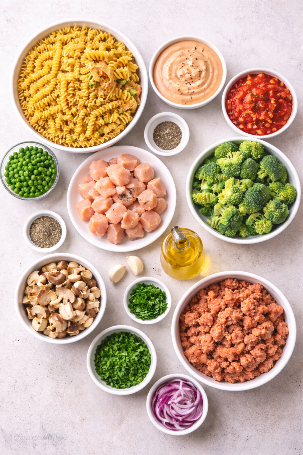 - 1 pound pasta (rotini, rigatoni, or your favorite shape)